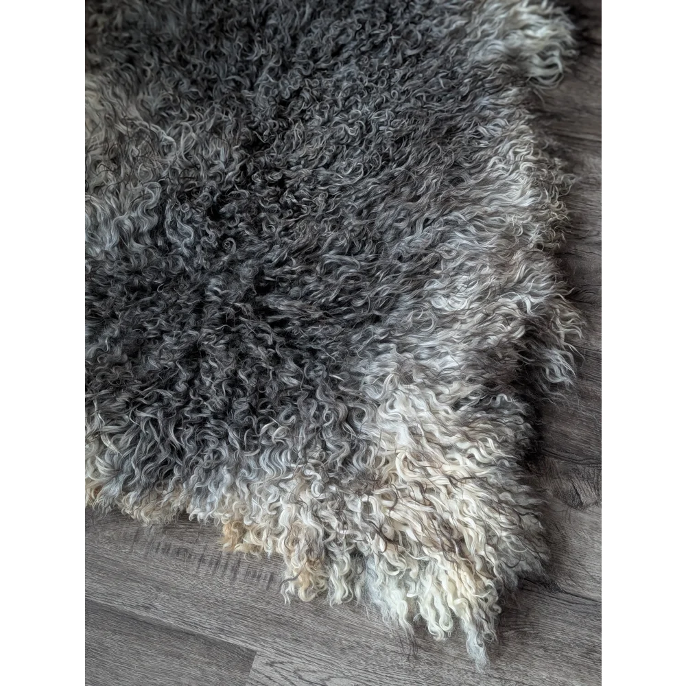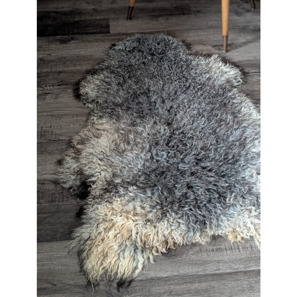 Gray and white curly Gotland sheepskin rug, 52x31 inches
