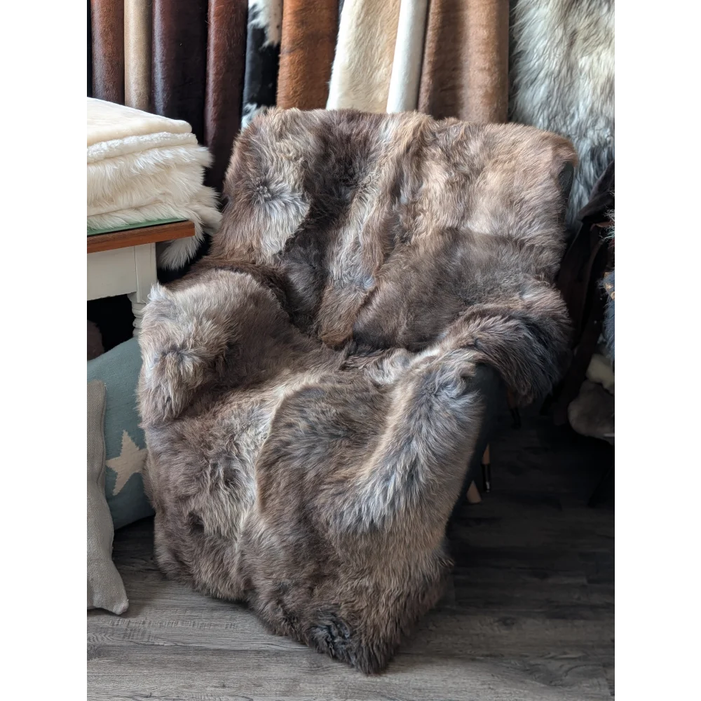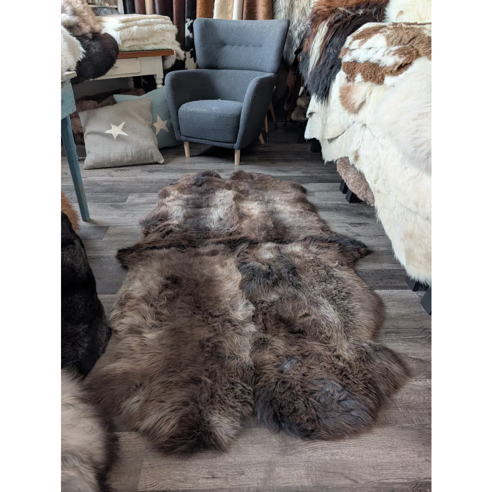 A lovely quad sized sheepskin area rug. Four British sheepskins sewn together, perfect for covering your favourite chair, a cozy rug, across the sofa, or on the bed.