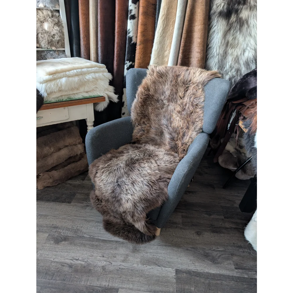 A lovely double sheepskin. Two British sheepskins sewn end to end, perfect for covering your favourite chair, across the sofa, or on the bed.