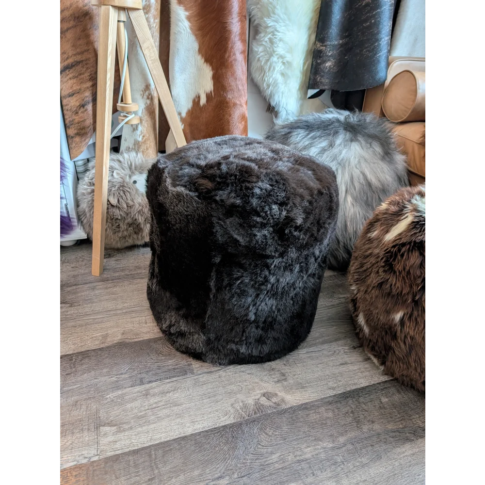 New! A fantastic stump pouf made from natural wolf Icelandic sheepskins, these sheepskins have been shorn so that the wool is 2" in length.
