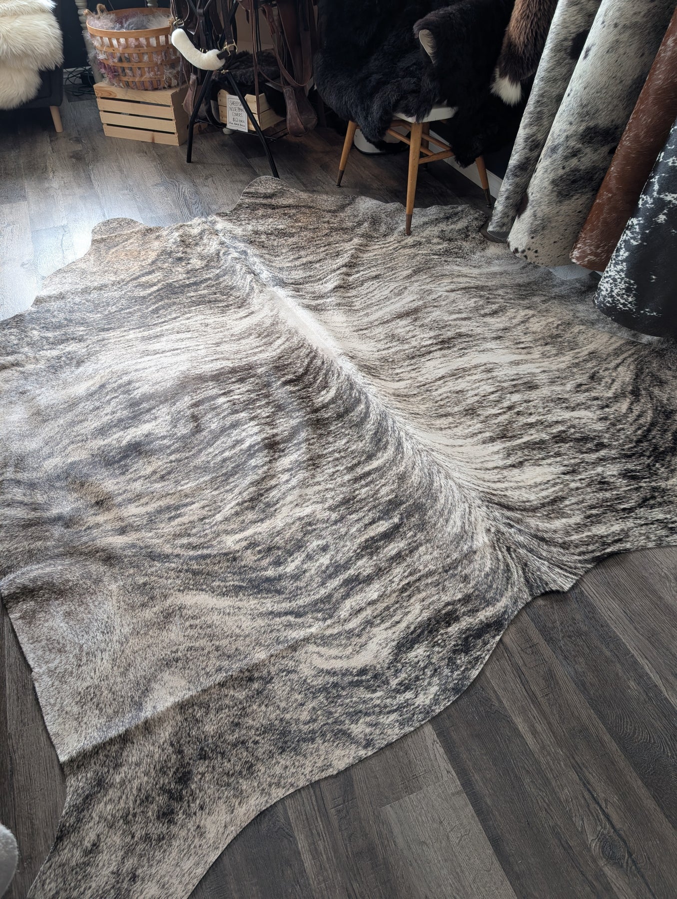 Cowhides make beautiful rugs for your home, offering a unique blend of rustic charm and sophisticated elegance. They feel incredibly soft underfoot, instantly imbuing your living space with an unmistakable aura of comfort and coziness. Generally, these rugs are very easy to care for, making them a practical yet luxurious addition to any room. To help your large cowhide last and maintain its pristine condition, it's a good idea to place it in a low-traffic area where it won't experience excessive wear, preserving its beauty for years to come.