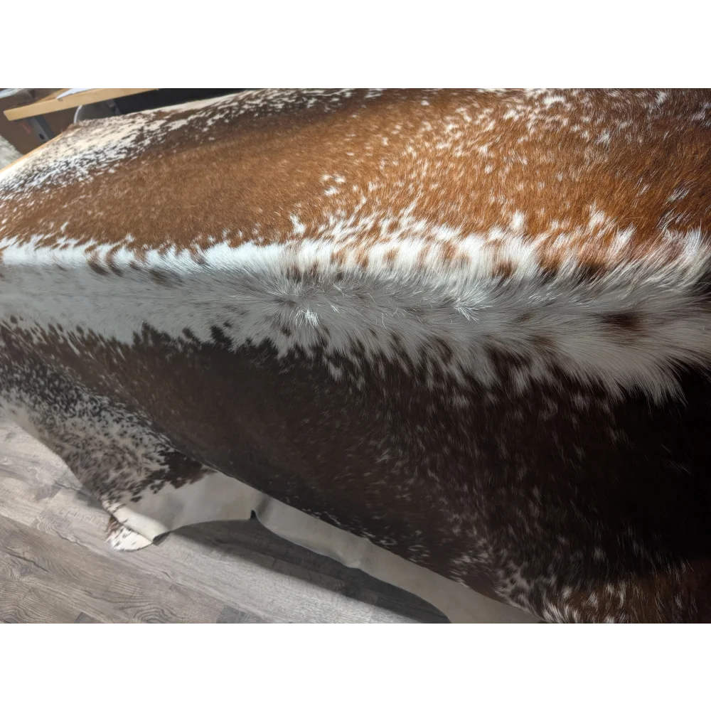 Si tu remarques que les bords sont gondolés, une astuce simple consiste à vaporiser légèrement le bord avec de l'eau, puis à placer quelque chose de lourd dessus pendant la nuit pour l'aplatir. Pour les parties gondolées vraiment tenaces, tu peux en fait les couper soigneusement avec un couteau exacto, une astuce utile pour entretenir ton investissement. Les climats secs ou les zones très fréquentées de ta maison sont souvent les coupables du gondolage des bords. Il est également normal que les peaux de vache présentent quelques imperfections naturelles ; parfois, de petites réparations sont effectuées par la tannerie au cours du processus de tannage long et complexe, étant donné que les peaux de vache sont très massives. Ces caractéristiques naturelles ne font qu'ajouter au charme et au caractère uniques de la peau, faisant de chaque peau de vache extra large une pièce unique.