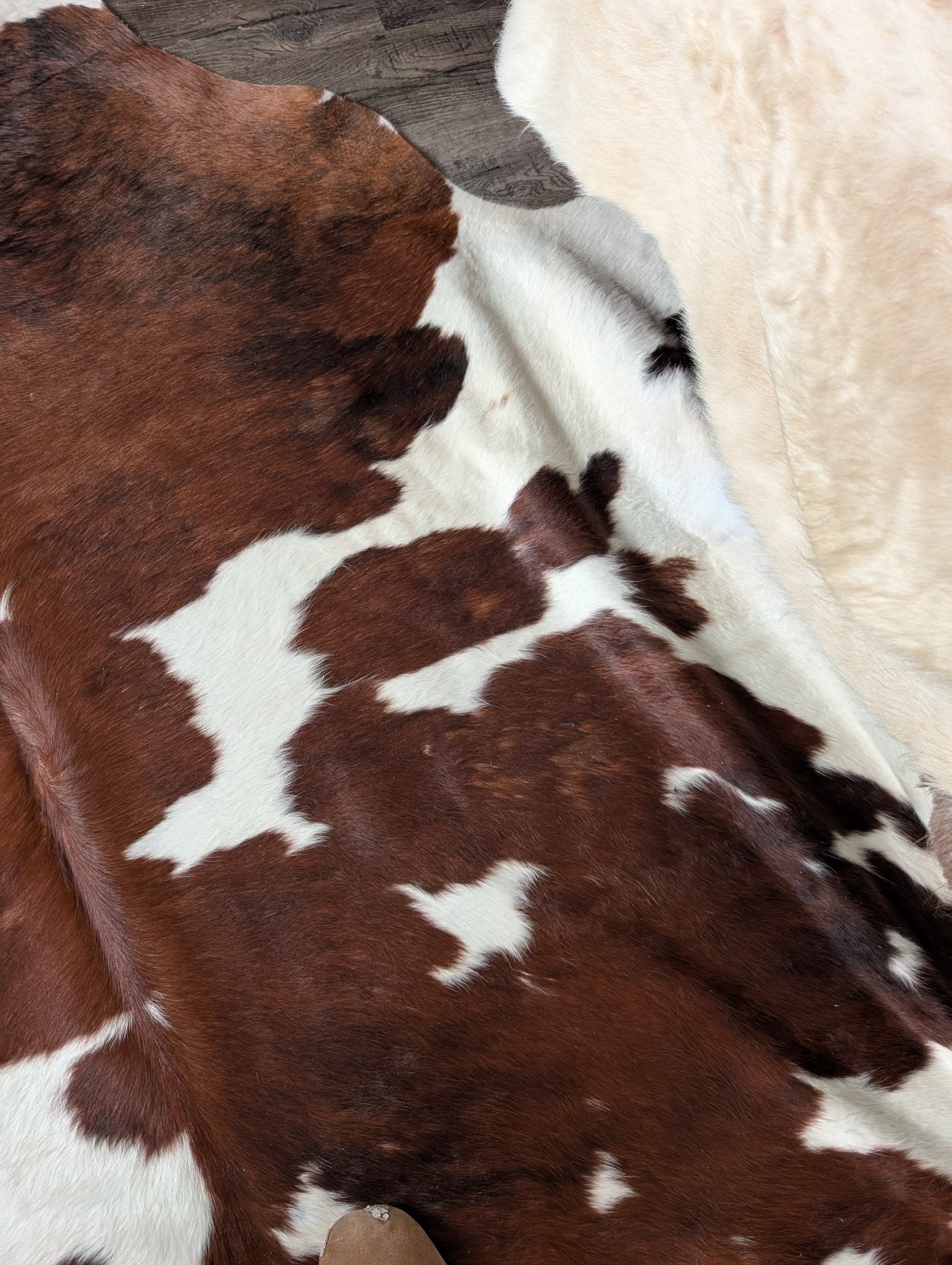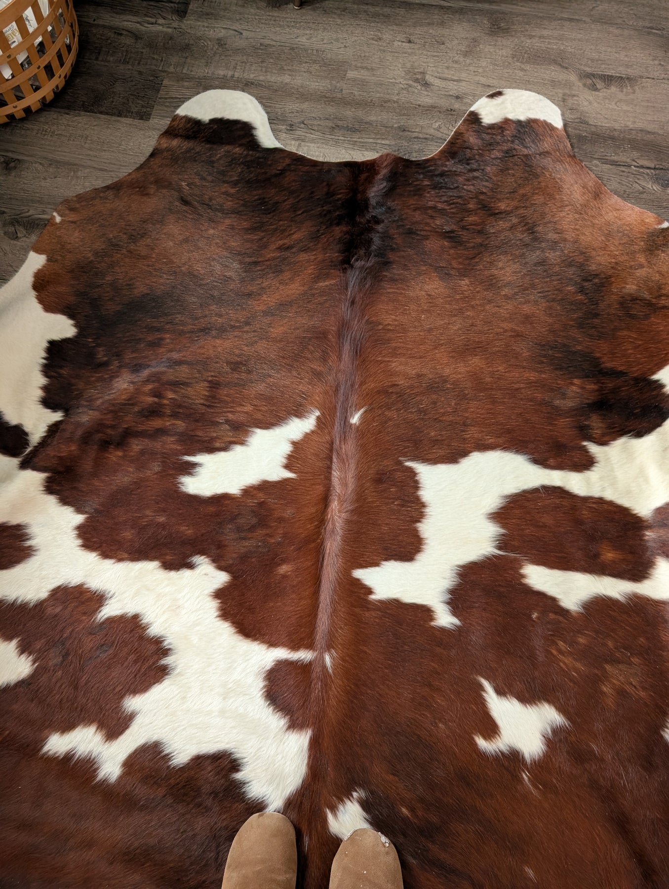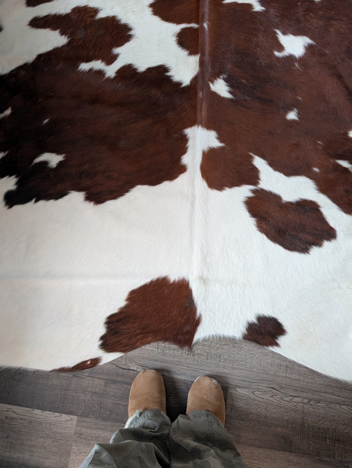 Généralement, nos peaux "Small Special" mesurent environ 6' x 6', offrant une taille polyvalente pour divers espaces. Une fois qu'elles arrivent, la taille en mètres carrés (SQM) de chaque peau de vache sera clairement indiquée dans son titre, de sorte que tu sauras exactement ce que tu recevras sans avoir à prendre de mesures individuelles. La photo de la liste te servira de guide et mettra en valeur la peau unique que tu recevras.