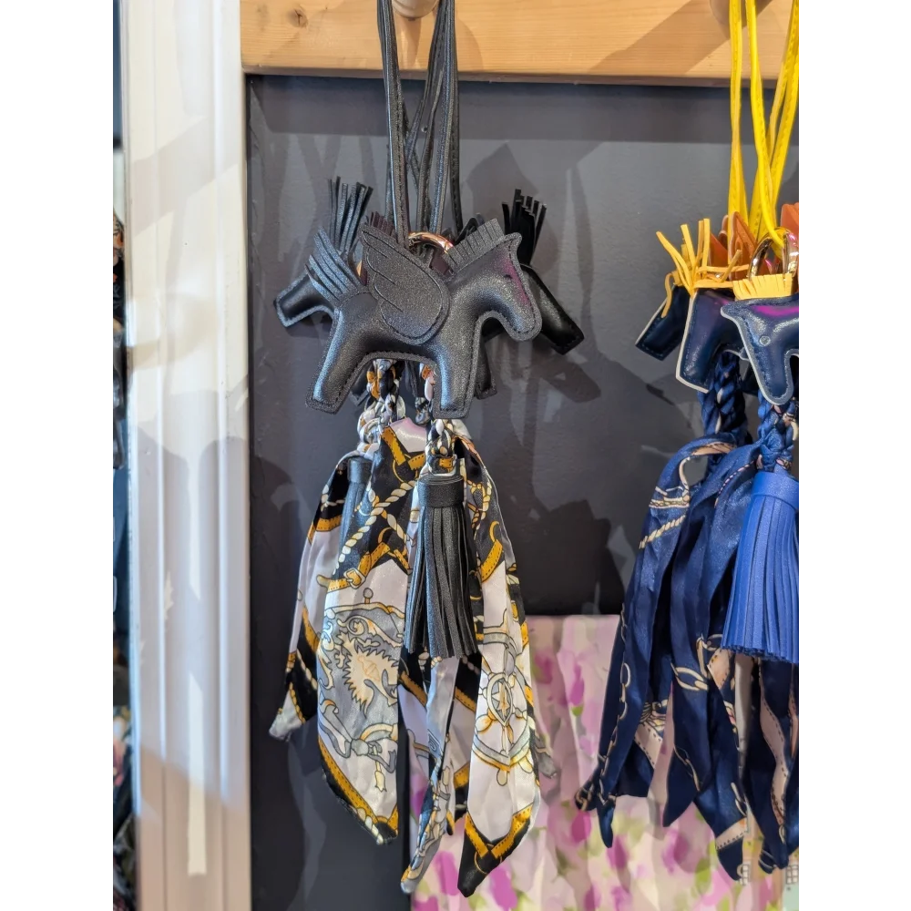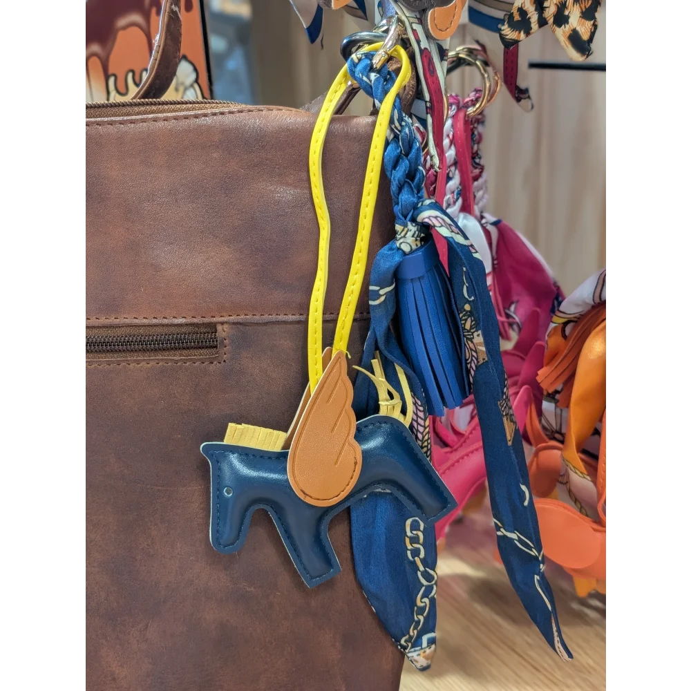Yellow horse, tassel and printed scarf BAG CHARM
