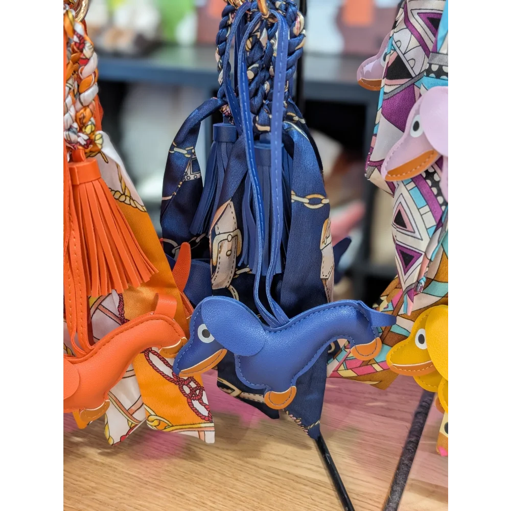 Blue dachshund, tassel and printed scarf BAG CHARM