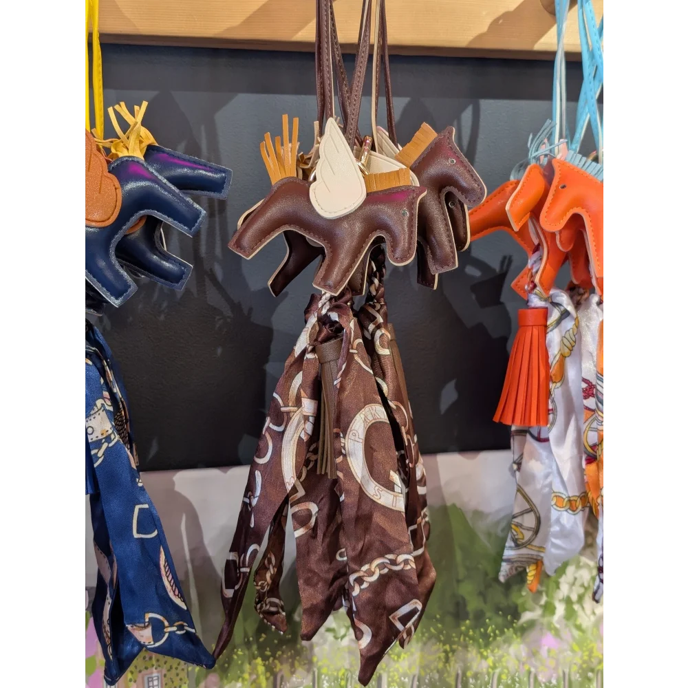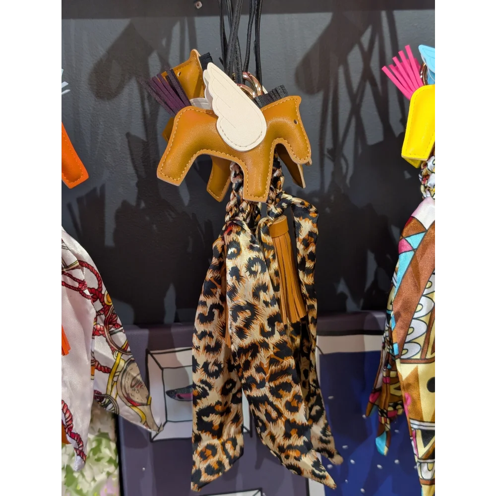 Light brown horse, tassel and printed scarf BAG CHARM