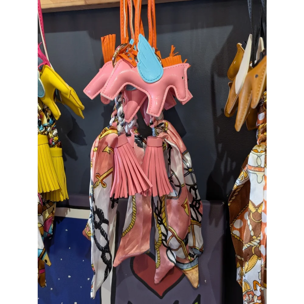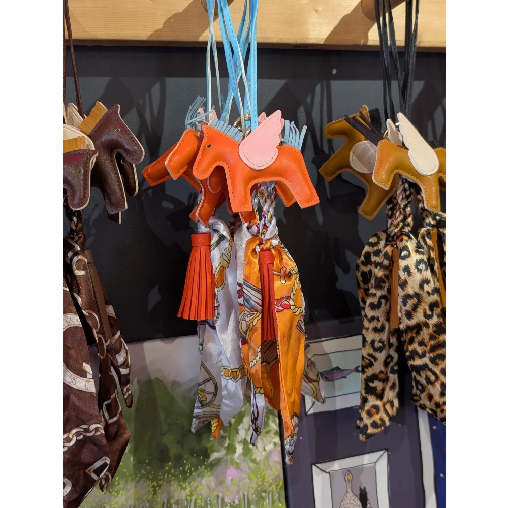 Orange horse, tassel and printed scarf BAG CHARM