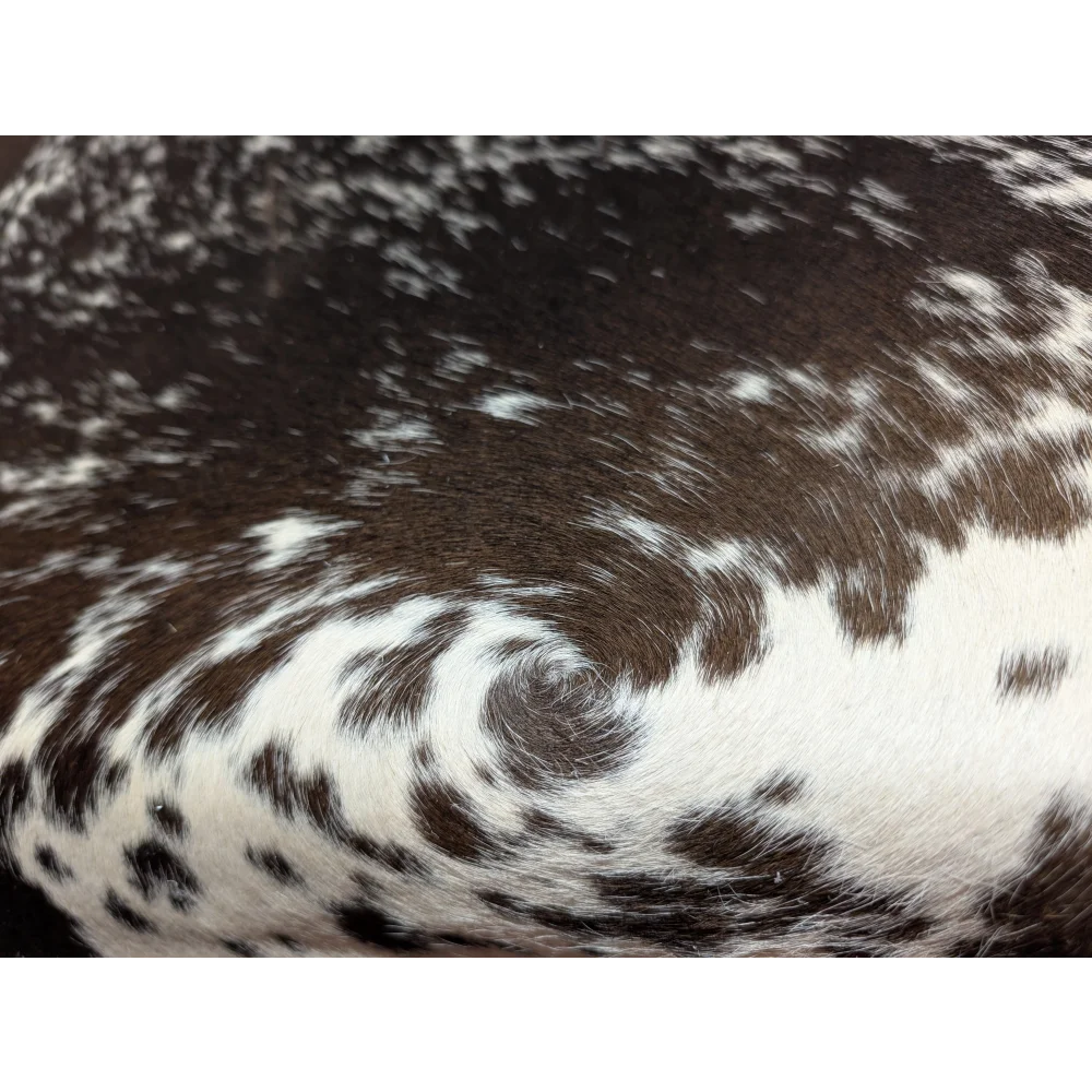 If you notice any curling on the edges, a simple trick is to lightly mist the edge with water and then place something heavy on it overnight to flatten it out. For really stubborn curled spots, you can actually carefully trim them away with an exacto knife. Dry climates or high-traffic areas in your home are often the culprits behind edge curling. It's also completely normal for cowhides to have a few natural imperfections; sometimes small repairs are made by the tannery during the long and complex tanning process, which is understandable given how massive cowhides are. These natural characteristics only add to the hide's unique charm and individual character, making each rug truly one-of-a-kind.